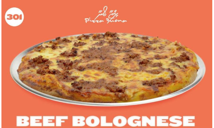 Indulge in the rich and hearty flavor of our Beef Bolognese pizza! Made with a crispy, thin crust and topped with a savory tomato sauce, delicious ground beef, and melted mozzarella cheese, this pizza is the ultimate comfort food. Our beef is cooked to perfection and seasoned with a delicious blend of herbs and spices, creating a flavor that's sure to satisfy your cravings.
